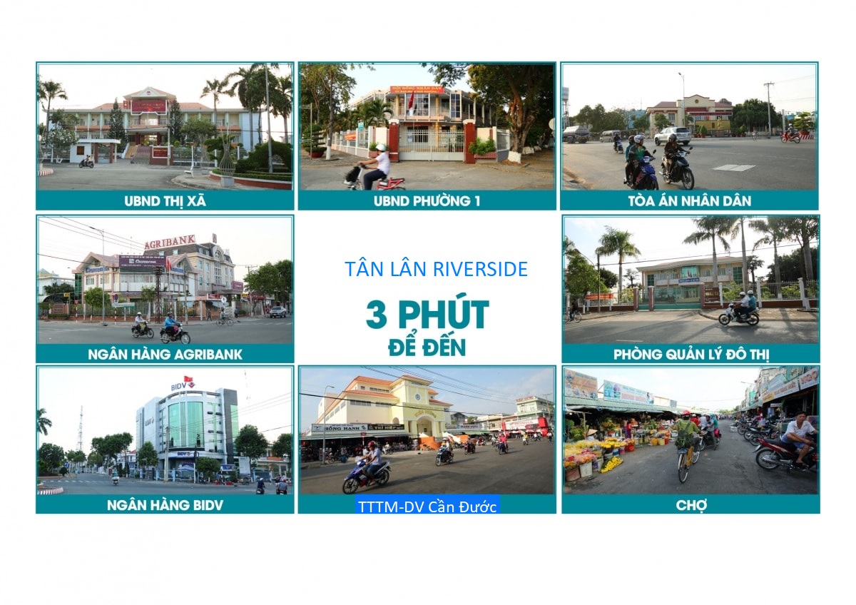 • Tân Lân Riverside nằm liền kề với nhiều khu công nghiệp đang hoạt động như KCN Long Định, Long Cang với KCN Cầu Tràm quy mô 79ha tại xã Long Trạch, KCN và cầu cảng Quốc tế…